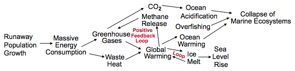 In the early 1900s, bird and bat guano was used as fertilizer but just as supplies were beginning to run out, technology came to the rescue in the form of the Haber-Bosch process. Two German scientists, Fritz Haber and Carl Bosch, invented processes that allowed production of virtually unlimited quantities of ammonia and ammonium nitrate. Exploiting fossil fuels to create high temperature and very high pressures to break apart the stable N2 bond of atmospheric nitrogen, the resulting nitrogen atom was combined with hydrogen to form an energy-rich NH4 ammonium molecule. The Haber-Bosch process created a positive feedback loop that permitted the human population to reach current day level of seven billion. Both Haber and Bosch were awarded Nobel Prizes and their discovery has been heralded as the most important in the last century. The Haber-Bosch process rescued agriculture by using fossil fuel methane to fix atmospheric nitrogen producing virtually unlimited amounts of ammonium nitrate (Smil 2001), which is an explosive as well as a fertilizer. Without this technological "advance," neither Germany nor Japan could ever have gone to war -- moreover, humans would have been limited by food supplies at much lower population densities. Basically, humans exploited these one-time fossil energy reserves to demolish many of Earth's natural ecosystems and turn them into arable land and crops to feed increasing numbers of people. Runaway population growth has led to massive consumption of energy, which in turn has generated waste heat and produced the greenhouse gases carbon dioxide and methane. These have caused global warming, released more methane, and have acidified and warmed the world's oceans. When coupled with overfishing, marine ecosystems are collapsing. Also ice is rapidly melting and sea levels are rising leading to the inundation of low lying areas.